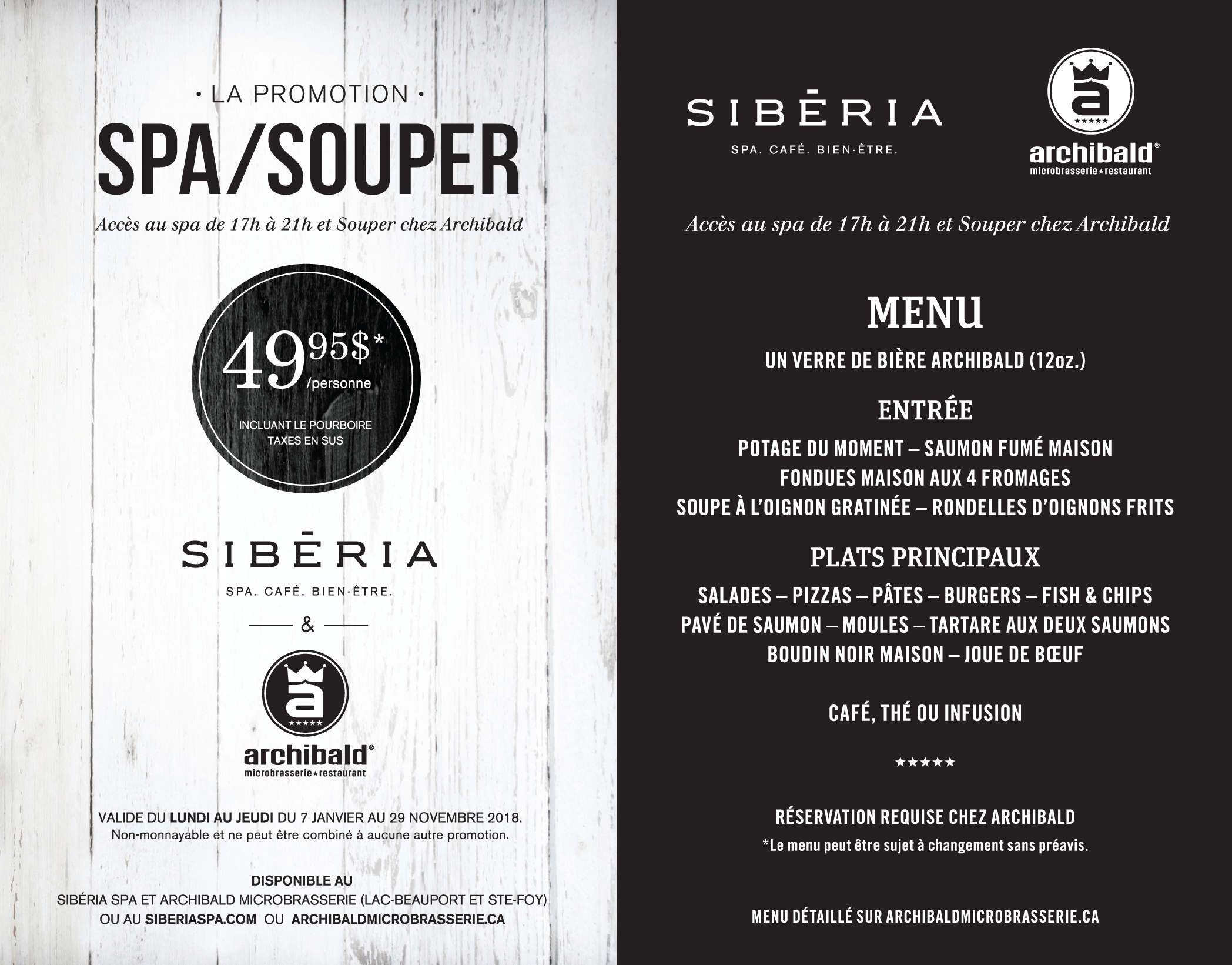 FORFAIT SPA + SOUPER À L’ARCHIBALD